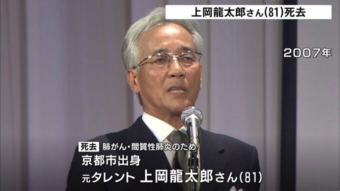 テレビの司会などで活躍した元タレントで京都市出身の上岡龍太郎さんが、先月19日に肺がんなどのため亡くなっていたことが分かりました。81歳でした。引退後の窓口を務める所属事務所によりますと、テレビの司会な…