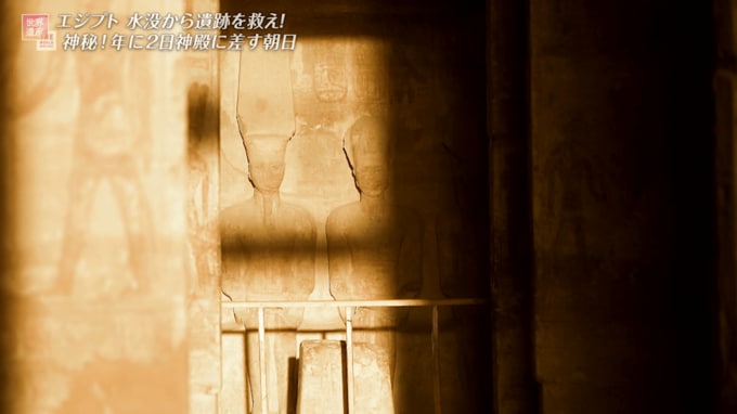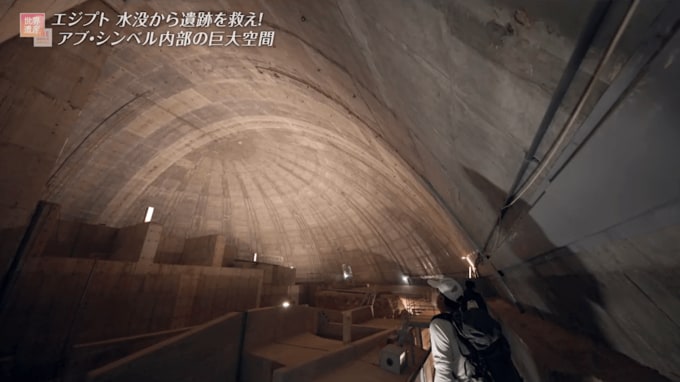 番組ではアブ・シンベル神殿の通常非公開の部分も撮影させてもらったのですが、正面のラメセス2世の坐像の横に作業用みたいな入り口があり、そこから内部に入って通路を行くと、突然、巨大なドーム状の空間が現れます。