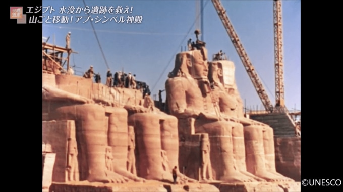 各国がさまざまなプランを出した結果、神殿を800あまりのパーツに切り分け、それを65メートル上の水没しない場所で組み立て直す・・・というスウェーデンの移築案が採用されました。そして5年がかりの工事によって、アブ・シンベル神殿は現在の場所に移動したのです。