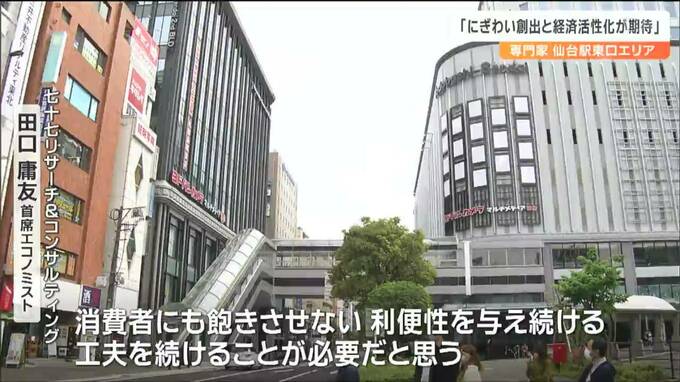 仙台駅東口でのヨドバシ第1ビルの開業について経済の専門家は「仙台駅東口エリアの賑わい創出と企業進出による経済活性化が期待できる」と指摘しています。