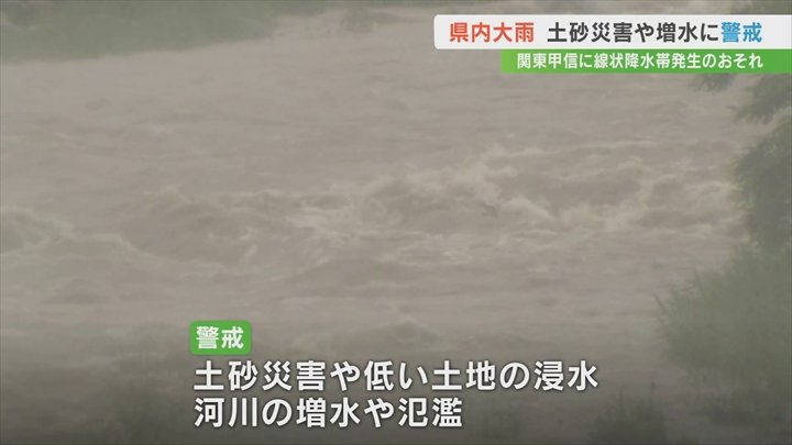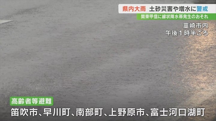 また広い範囲に大雨警報、甲府市など4つの市に洪水警報が出されています。