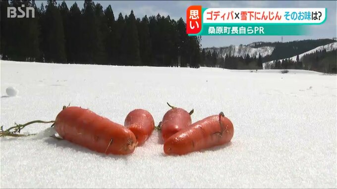 高級チョコレートメーカー「ゴディバ」と津南町のブランド野菜「雪下にんじん」がコラボした新商品が2日に発売されました。津南町の桑原悠町長(36)が自らPRです。