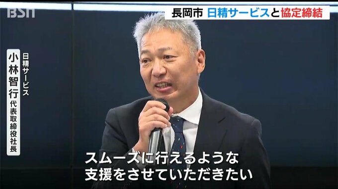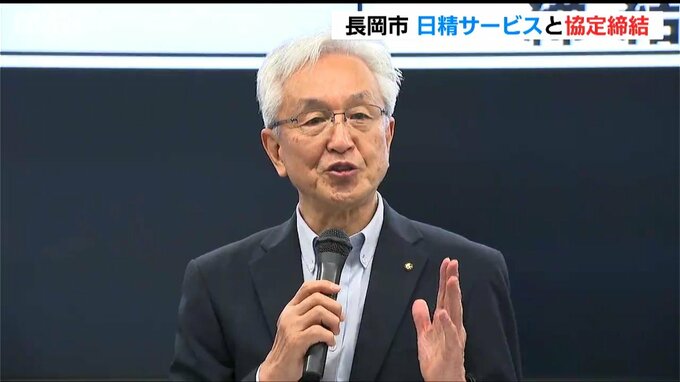 協定書にサインしたのは、長岡市の磯田達伸市長と日精サービスの小林智行社長です。