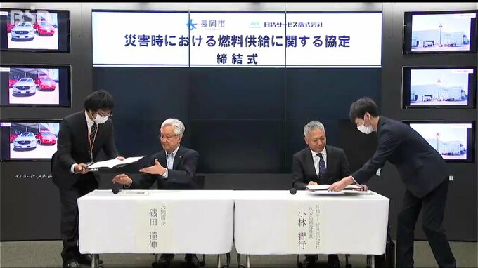 大雪や地震などの災害が起きた際に公用車の燃料を確保するため、長岡市が物流会社と協定を結びました。