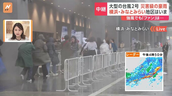 大型の台風2号は東に進む中、関東にも大雨と強風の影響が出ています。横浜市・みなとみらいエリアの午後5時現在の様子をお伝えします。