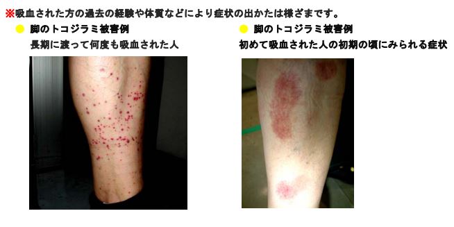 トコジラミの主な栄養源は血液で、幼虫・成虫(雌雄)ともに吸血します。刺されると、赤っぽい発疹ができ、アレルギー反応で激しいかゆみを引き起こす場合もあります。ただ、飢餓に強く、3か月位は吸血しなくても生存が可能です。