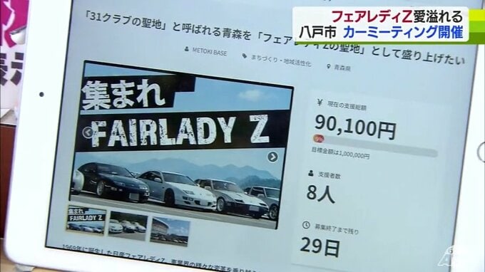 管野さんは仲間と一緒に7月16日に八戸市でカーミーティングを計画。目標はフェアレディZを100台以上を集めることです。いまはクラウドファンディングで運営費などの支援を求めながら参加を呼びかけています。
