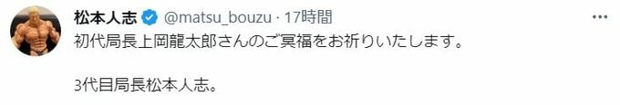 現在、バラエティ番組「探偵!ナイトスクープ」で「局長」を務めている松本人志さんが、自身のツイッターで上岡さんへのお別れを記しています。