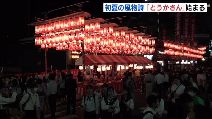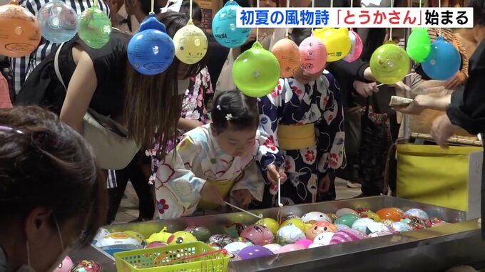 広島市中区にある円隆寺では、約500個の赤い提灯が掲げられました。また、「とうかさん」に合わせて開催される「ゆかたできん祭」では、4年ぶりに中央通りの歩行者天国が復活しました。 訪れた人たちは、屋台の食べ物を食べたり、ゲームをしたりして楽しんでいました。