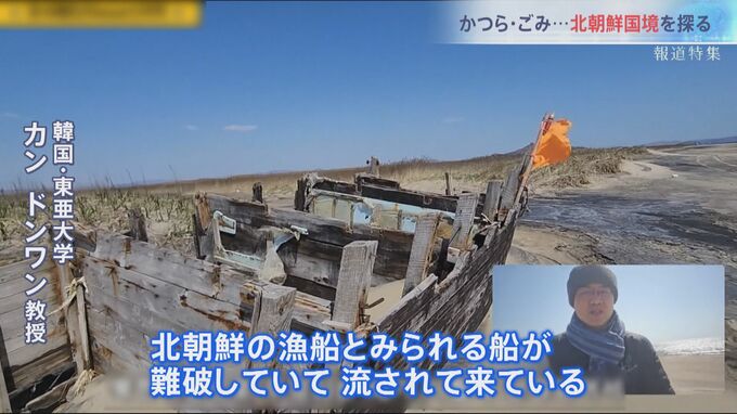 「北朝鮮の漁船とみられる船が難破していて、流されてきています」