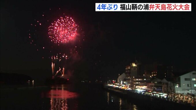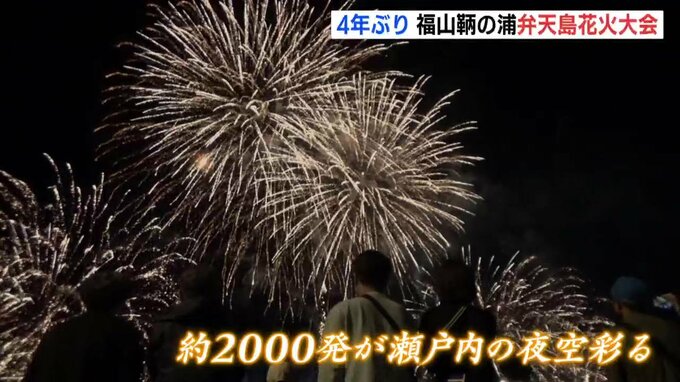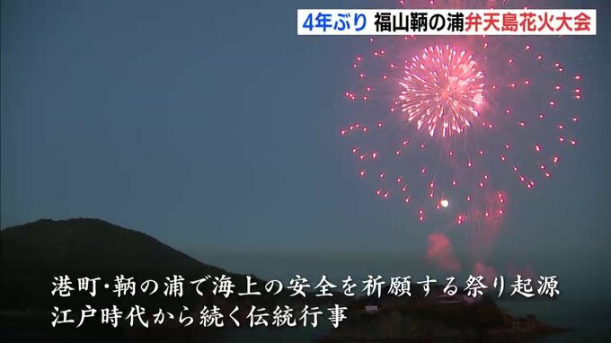 初夏の訪れを告げる風物詩、福山鞆の浦の弁天島花火大会が3日夜、4年ぶりに開催されました。