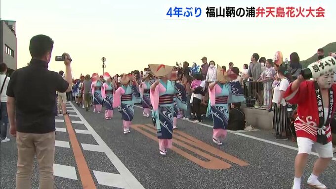 3日夕方から交通規制が実施された広島・福山市鞆町ー。「福山鞆の浦弁天島花火大会」は、地元の伝統芸能「アイヤ節」で幕を開けました。