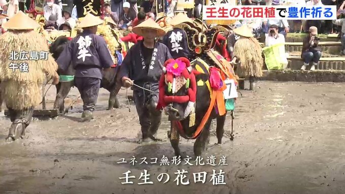 4日、ユネスコの無形文化遺産に登録されている広島・北広島町の「壬生の花田植」が、4年ぶりに通常開催されました。