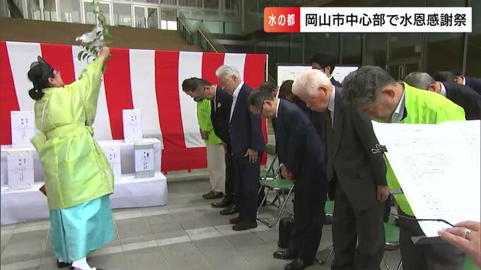 岡山発展の礎となった旭川の豊かな流れに感謝を捧げようと、岡山市中心部で神事「水恩感謝祭」が行われました。神事は旭川への感謝を示すとともに、きのう(4日)プレオープンイベントが行われた岡山芸術創造劇場…