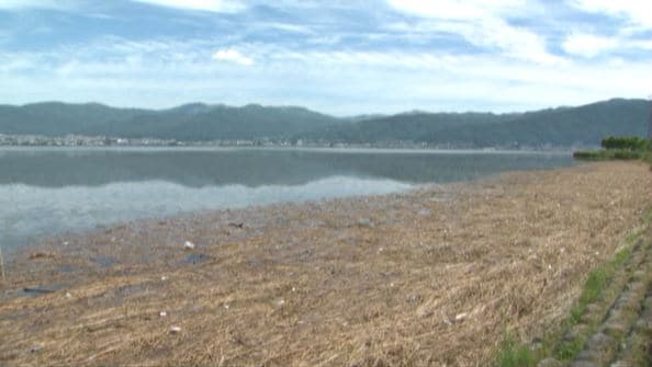 2日の大雨の後、諏訪湖の護岸には、大量の枯れ草やゴミが流れ着いています。周辺では漁業への影響も出ています。漂着したゴミは南側の護岸沿いおよそ3キロにわたって点在していて、大量のヨシの枯れ草に混じってペ…