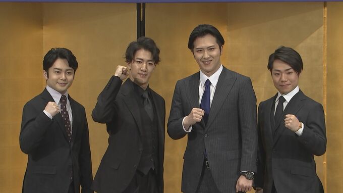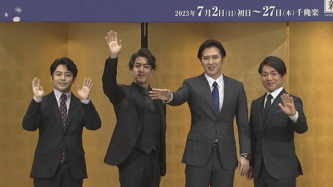 新作歌舞伎「刀剣乱舞 月刀剣縁桐」の製作発表記者会見が行われ、尾上松也さん、尾上右近さん、中村鷹之資さん、中村莟玉さんが出席しました。