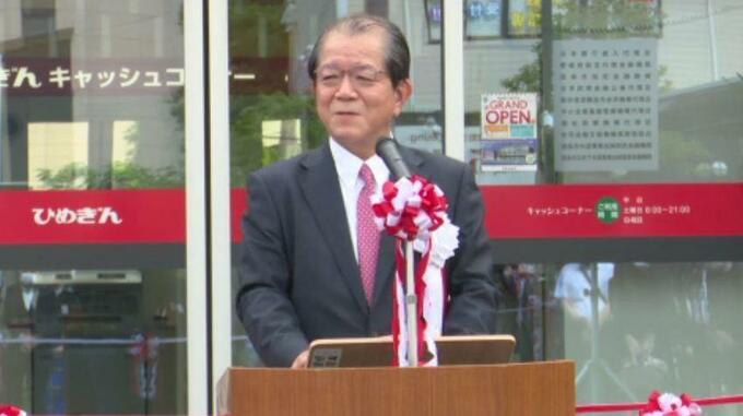 愛媛銀行の西条支店が環境に配慮した店舗に生まれ変わり、5日、グランドオープンを祝う記念のセレモニーが行われました。営業開始前に行われたセレモニーでは、関係者がテープにはさみを入れたあと、地元の園…