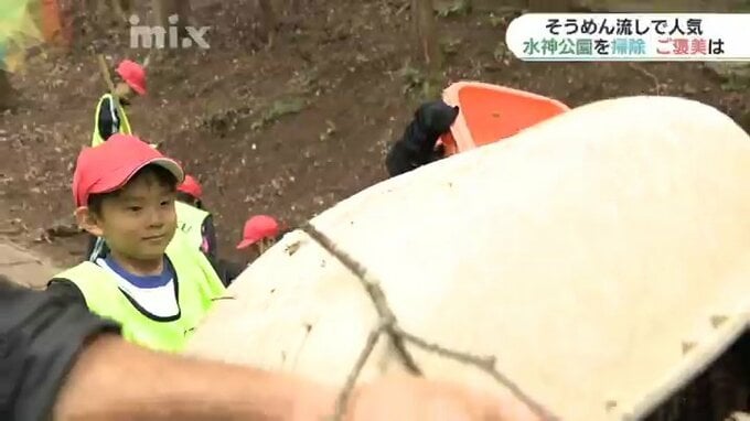 夏にはそうめん流しの人気スポットになる美祢市の水神公園を地元の児童らが掃除し、来月の滝開きに備えました。うれしいご褒美もあったようです。水神公園を掃除したのは公園近くにある於福小学校の児童24人です。…