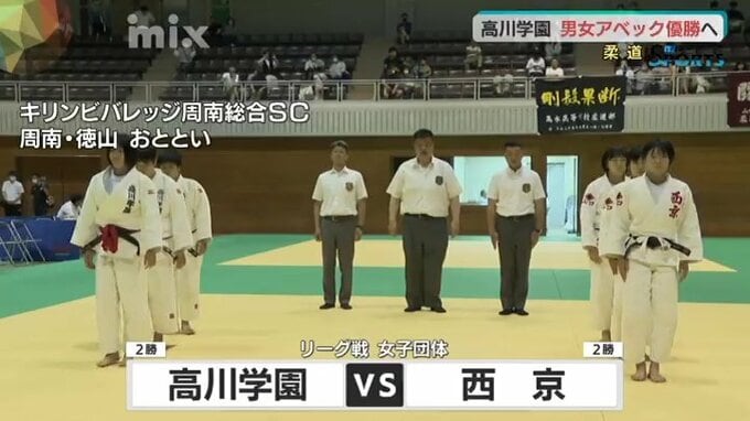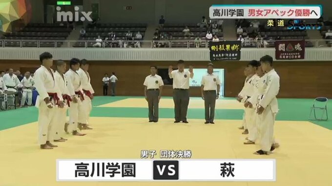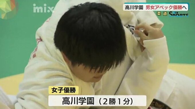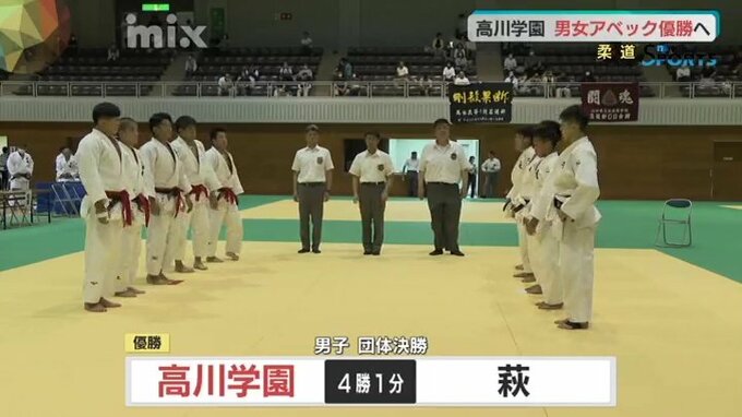 大将戦で有泉が内股を決めるなど決勝は4勝1分けと強さを見せた高川学園。3大会連続のアベック出場です。