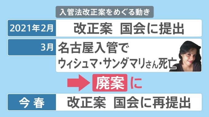 入管法改正案は、2021年2月にも国会に提出されました。その3月には名古屋入管でウィシュマ・サンダマリさんが亡くなりました。これを機に入管の不信感が強まり、廃案となりました。