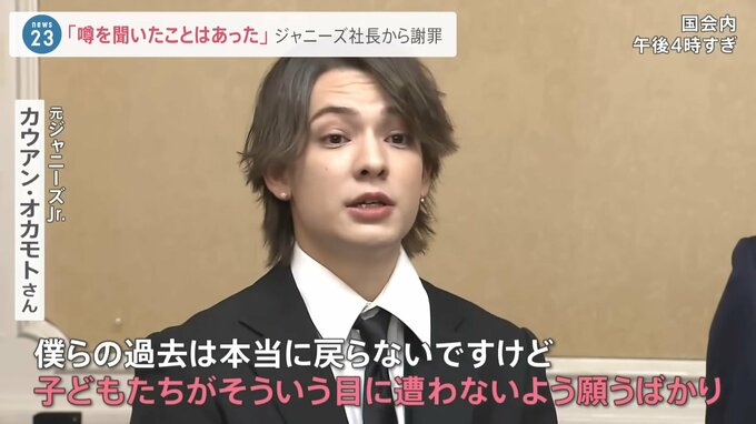 2023年6月5日、国会に姿を見せたのは、ジャニー喜多川氏からの性被害を訴えている元ジャニーズJr.の二本樹顕理さん、カウアン・オカモトさん、橋田康さんの3人です。