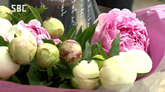 長野県中野市で、日本一の生産量を誇るシャクヤクの切り花が地元の小中学校と高校に贈られました。