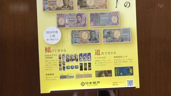 来年度上期に20年ぶりに切り替わる1万円などの新しい紙幣が、山口県内で初めて日本銀行下関支店で公開されました。