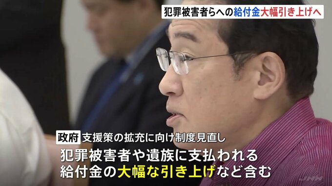 犯罪被害者らへの給付金が大幅に引き上げられる見通しです。岸田総理「犯罪被害者等施策の充実強化に全力で取り組んでいただくよう、お願いをいたします」政府はきょう、犯罪被害者や遺族に支払われる給付金の大幅…