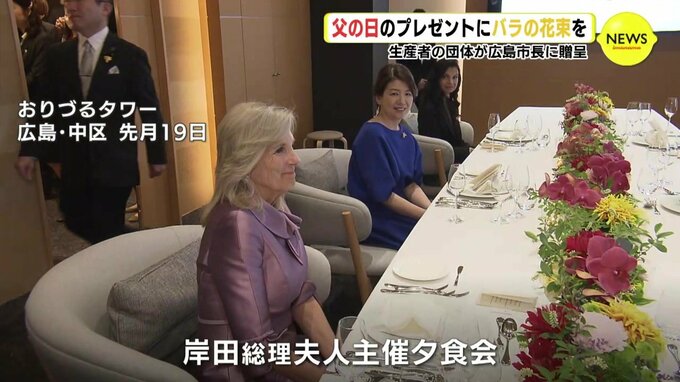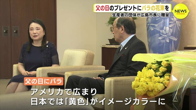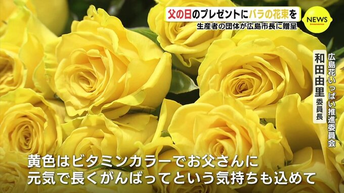 父の日のプレゼントに花を選んでもらおうと6日、生産者などでつくる団体が、広島市の松井市長にバラの花束を贈りました。