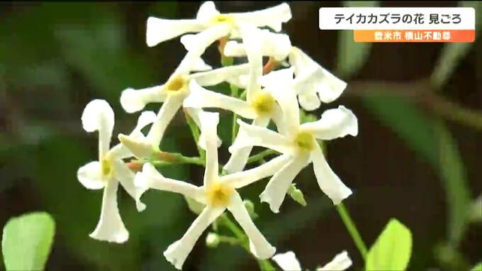 宮城県登米市の横山不動尊では、樹木などに絡みついて可憐に咲く「テイカカズラ」の花が見ごろを迎えています。登米市津山町の横山不動尊です。不動堂の前にある高さ20メートルほどのヒバの木にはテイカカズラが絡…