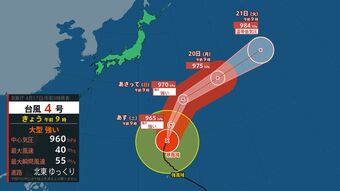 【台風情報】大型で強い「台風4号」最大瞬間風速55m 小笠原近海に接近…今後の進路予想は? ※22日(水)にかけての雨風シミュレーション【気象庁 17日最新】