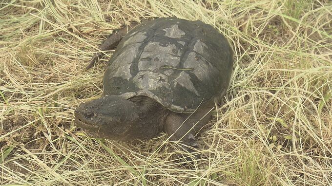 カミツキガメについて環境省では、見つけた場合は直接触らず、警察や自治体に連絡をするよう呼びかけています。