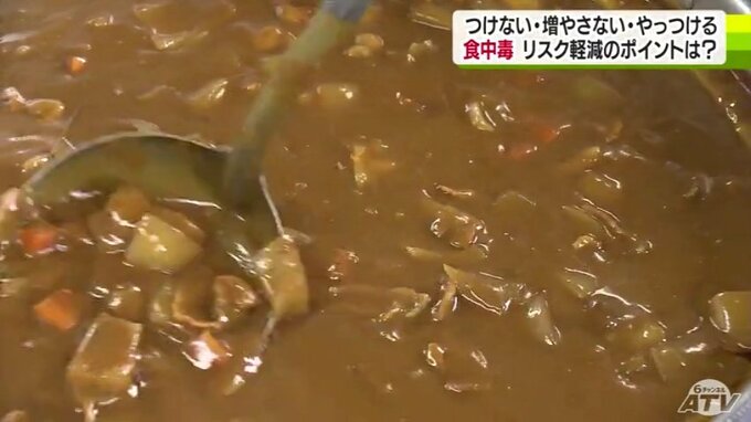 「ウエルシュ菌という食中毒を起こす菌がありましてそれは熱に強い殻を被っているときがあります。カレーが一晩室温で放置されていますと殻を破ってまた増え始めてカレーの中でどんどん増えてしまうことがあります」