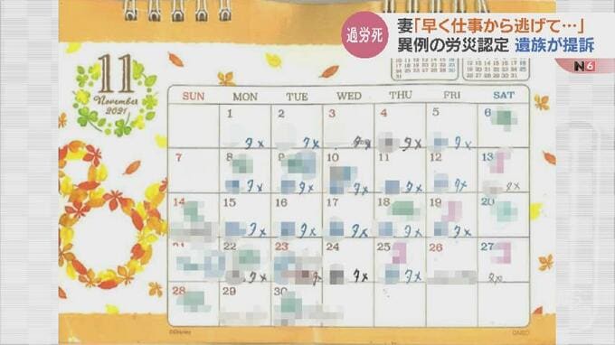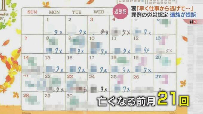 男性が亡くなる前の11月は1か月で21日。大半が埋まった翌月に、男性は自宅で倒れました。