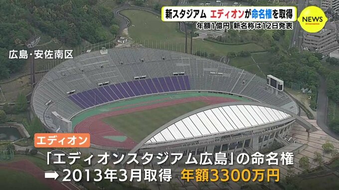 エディオンは、広島市安佐南区にある「エディオンスタジアム広島」の命名権を2013年3月に取得していて、命名権料は現在、年額3300万円となっています。