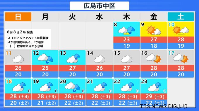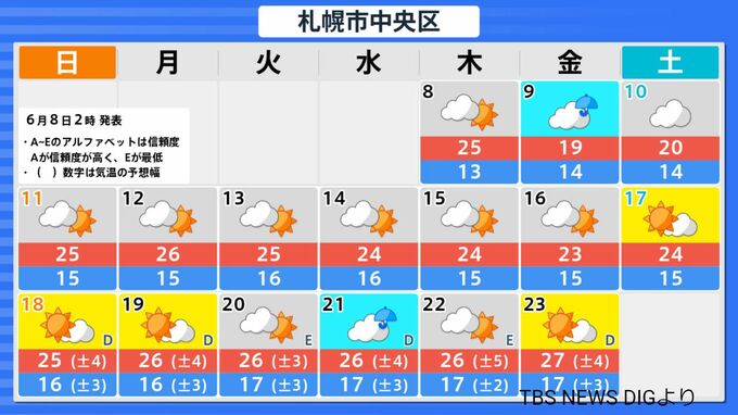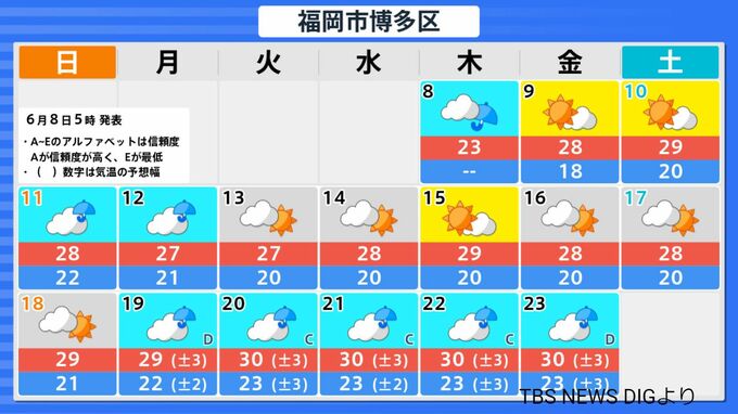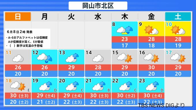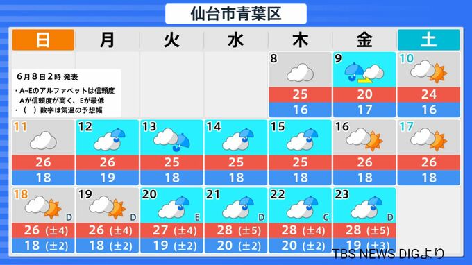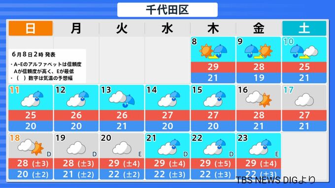 皆さんのお住いのエリアの16日間予想は、市区町村別に「TBS NEWS DIGアプリ」で確認することができます。