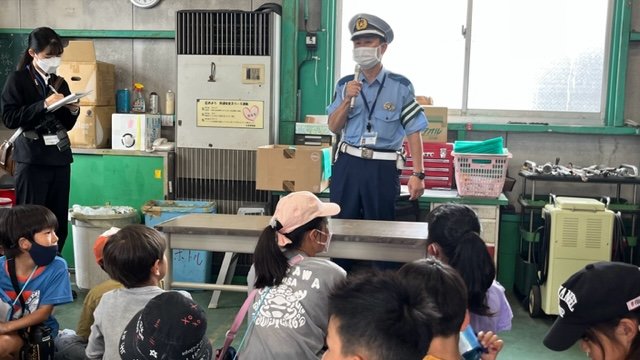 また、室内の講習では、自転車の点検場所「ブ」レーキ「タ」イヤ「ハ」ンドル「しゃ」たい「ベル」を「ぶたはしゃべる」という合い言葉で教わったほかヘルメットをかぶることの重要性を学びました。