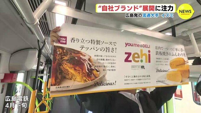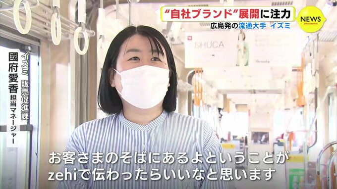 イズミは、4月20日からの5日間、広島電鉄の全路線の中づり広告を「zehi」と、去年9月にスタートしたオリジナルの衣料品ブランド「SHUCA」で一色にしました。