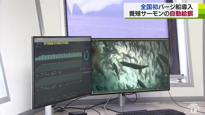全国で初めて導入した船でブランド力のアップにも期待です。沖合で飼育する養殖サーモンに陸上から遠隔で餌を与えられるシステムを搭載した船を、青森県内の企業が導入し、養殖施設がある今別町で7日公開しました…