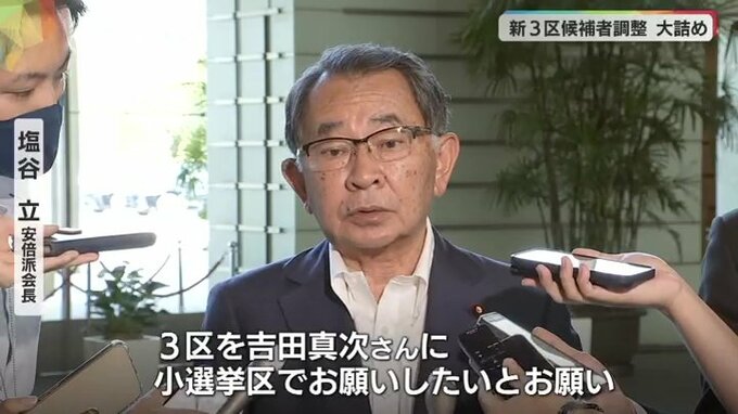 自民党山口県連の幹部が7日、自民党の森山選対委員長と面会し、林氏と吉田氏が共に新3区を希望しているとする意向を伝えました。