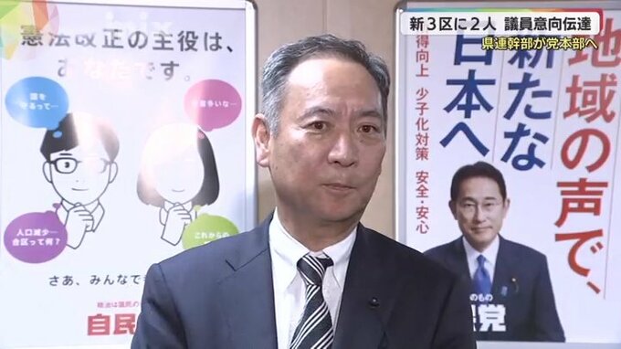 新3区を希望する2人の議員について県連では優劣をつけずに報告したということです。森山選対委員長は「早急に調整する」と応じたということです。