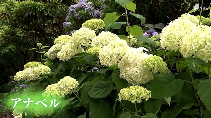 伊東市の観光施設ニューヨーク ランプ ミュージアム&フラワーガーデンでは、城ケ崎海岸に自生する品種「城ケ崎」をはじめ、200種、3000株のアジサイを楽しむことができます。いまは「アナベル」や「ごきげんよう」という品種の、存在感のあるアジサイが見ごろを迎えています。2023年は例年よりやや早い開花で、6月中旬に見頃を迎えるということです。
