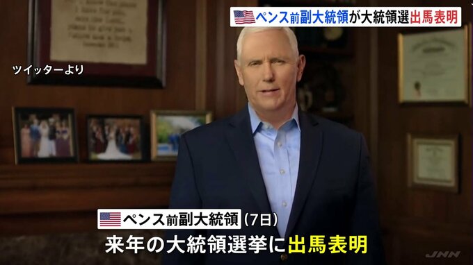 アメリカのペンス前副大統領が、7日、来年の大統領選挙への出馬を表明しました。ペンス前副大統領「憲法を尊重しないように働きかけるような人物は二度とアメリカ大統領になるべきではない」ペンス氏は、トランプ…