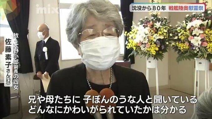 犠牲者の1人、副長の大野小郎さんの四女、佐藤素子さんは2歳の時に父を亡くしました。
