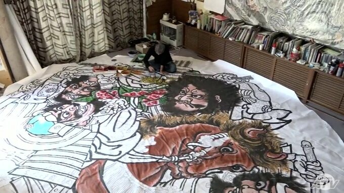 心が弾む夏祭りへ制作は山場を迎えています。ねぷた絵師は今年はコロナ禍前の姿に戻る弘前ねぷたまつりで観客を圧倒する作品に仕上げようと筆を動かしています。勇壮な武者絵を赤や黄色で色付けしているのは、ねぷ…