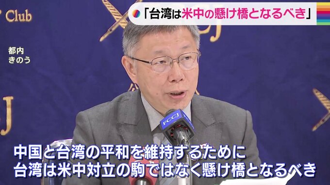 来年の台湾総統選で立候補を表明し、来日中の前台北市長・柯文哲氏が会見し、中国との緊張が続くなか、「台湾は米中対立の駒としてではなく、懸け橋となるべき」と語りました。来年の台湾総統選で第3勢力の野党民…