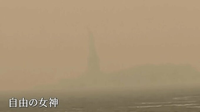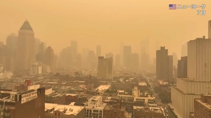 オレンジ色に染まったニューヨークはまるで火星。焦げ臭さのため、鼻をつまんで歩く人の姿も見られました。原因は隣国カナダで相次ぐ山火事。ニューヨークは“世界最悪”の大気汚染都市となり、ブロードウェイでは呼吸困難で俳優が急遽交代になったといいます。