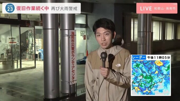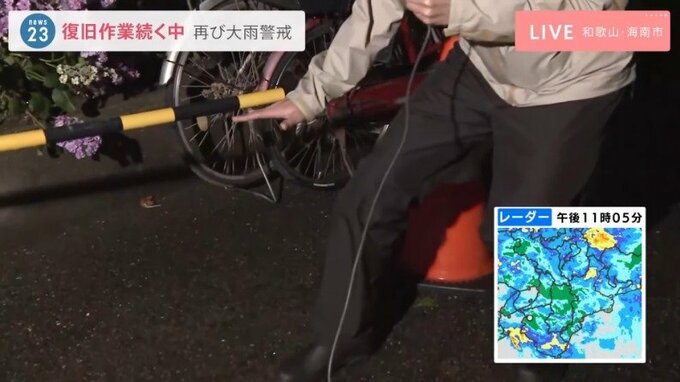 大雨警報が出る和歌山県海南市で取材を続けている喜入キャスターと繋ぎます。今の雨はどんな様子でしょうか?