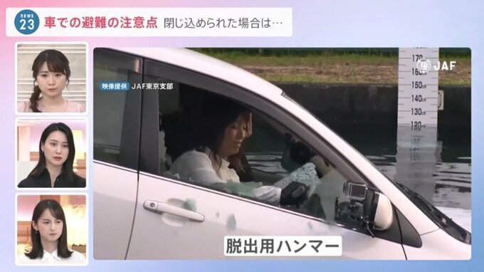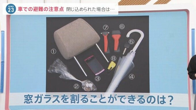 ハンマーじゃないと歯が立たないわけですね。こうしたものを車に常備しておくことも必要ですけど、まずは早め早めの避難の判断ということを心がけていただければと思います。そして心配なのは台風3号でもありますね。