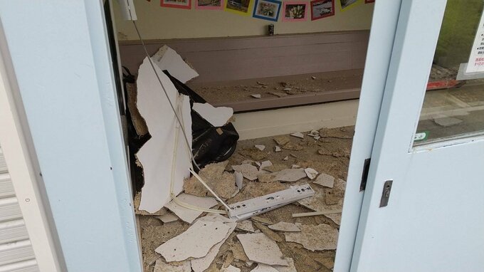 県によりますと、8日午前11時半ごろ、只見町にあるJR只見線の会津蒲生駅を巡回で訪れた県の職員が、駅の待合室の天井の壁材がはがれ落ちているのを見つけました。
